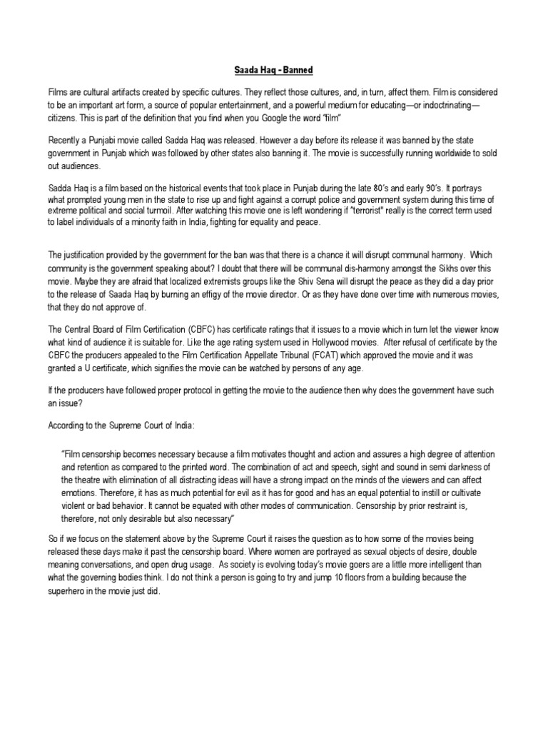Movie Review Sadda Haq A Welcome Attempt To Screen Realistic Cinema In Punjabi - 29th january 2014 sadda haq written update.